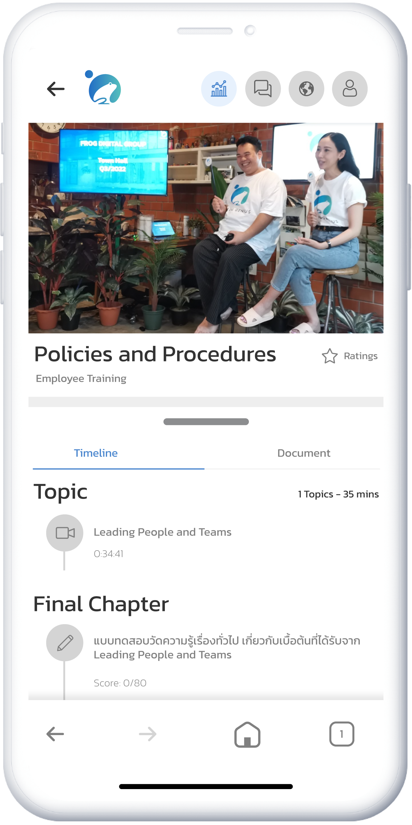 การฝึกอบรม พนักงานใหม่ การพัฒนา Up Skill ทักษะในยุคที่ การเปลี่ยนแปลงสูง ที่จำเป็นให้พนักงาน การอัปเดตหลักปฏิบัติ (Code of conduct) และ สมรรถนะ (Competency) ให้มีความทันสมัย ซึ่ง FROG GENIUS LMS เพิ่มการ มีส่วนร่วมของผู้เรียน ติดตามการฝึกอบรมและประสิทธิภาพของผู้เรียนด้วย อินโฟกราฟิกและรายงาน สำรวจผู้เรียนของคุณหลังการฝึกอบรม ดูว่าสิ่งใดใช้ได้ผล สิ่งใดใช้ไม่ได้ มี Learning Path มีเข้าใจง่าย